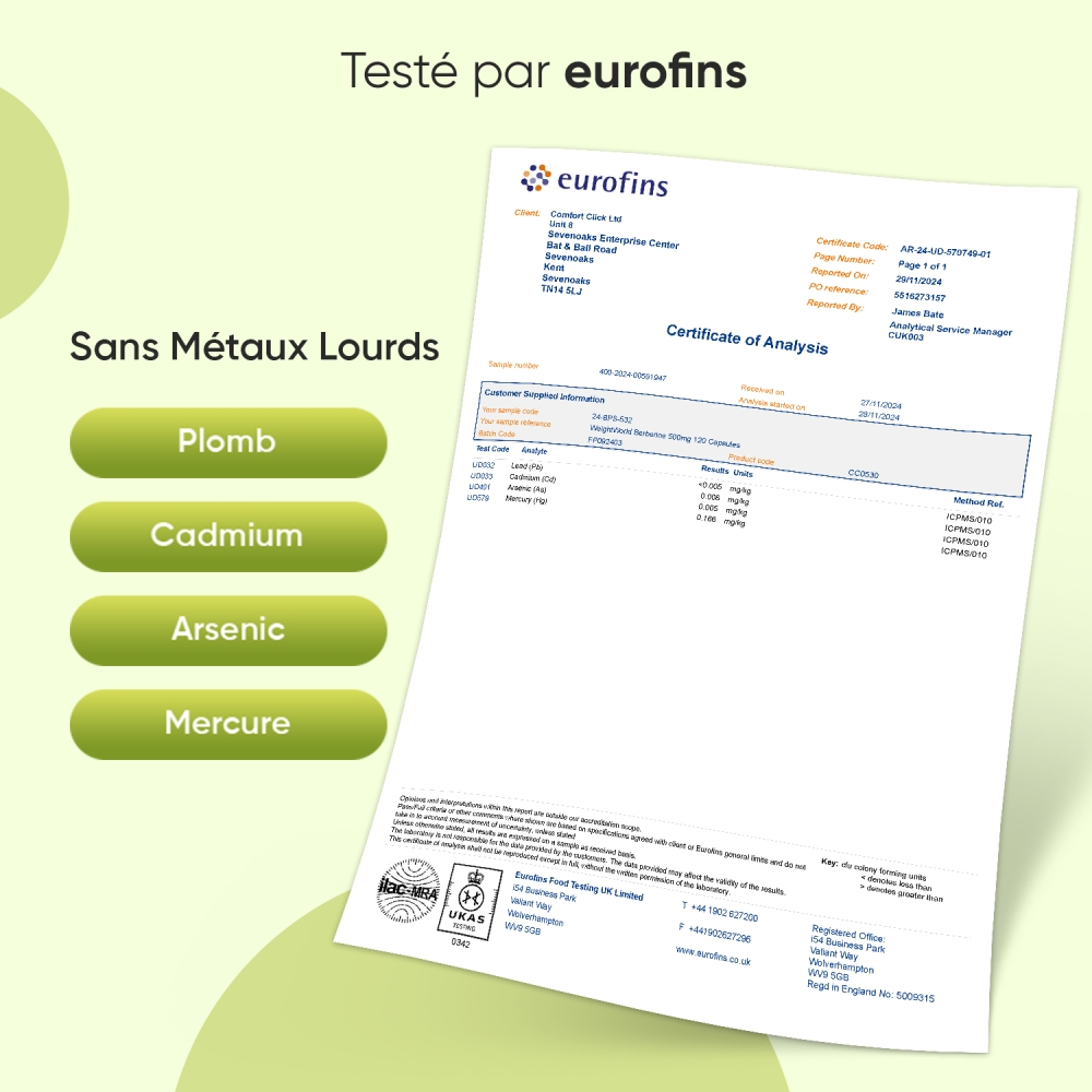 - Doses de 500 mg de berbérine titrée à 85 %