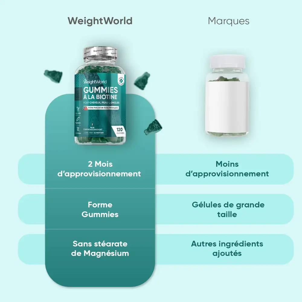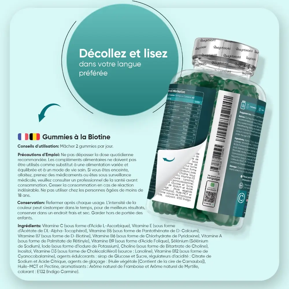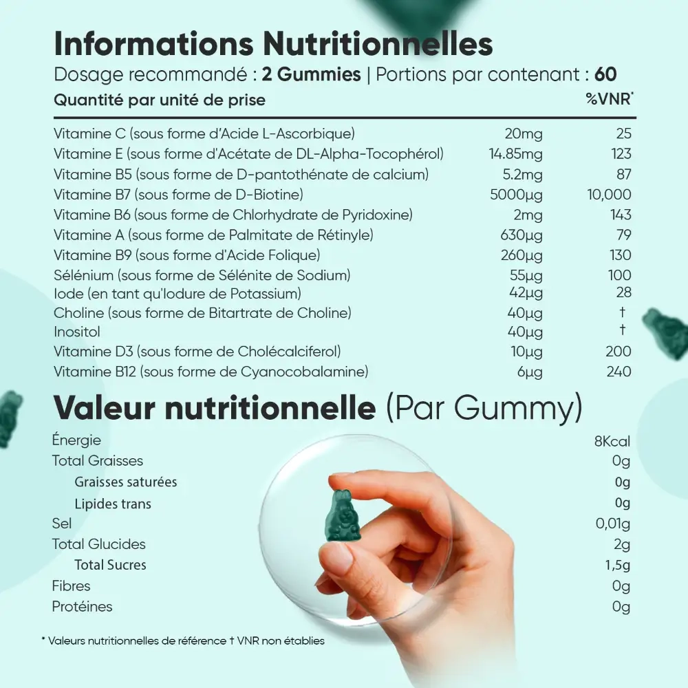 450 mcg -120 Gummies - Cheveux, Peau et Ongles
