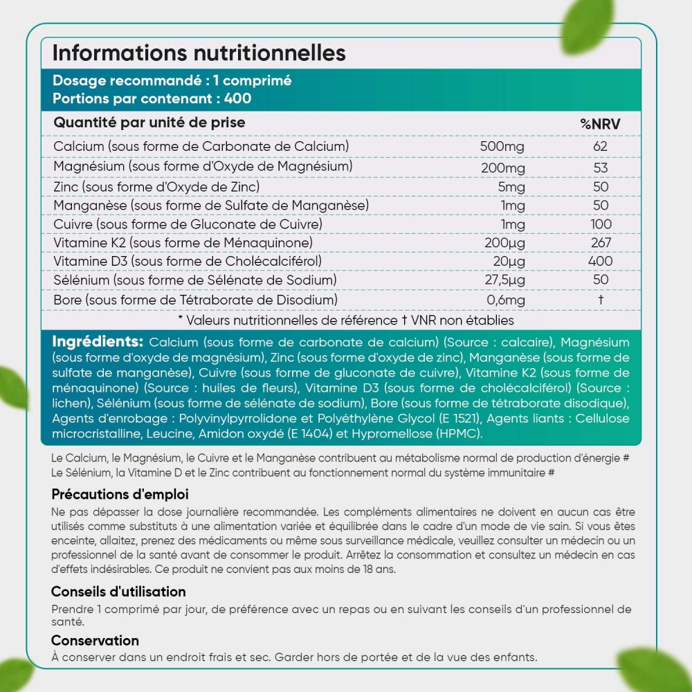 400 comprimés | Pour les os, les muscles et l'immunité*