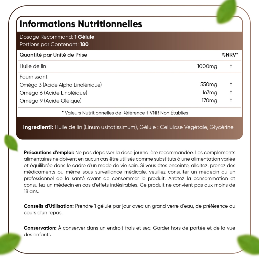 - Qualité irréprochable : fabriquée en Union Européenne sous les normes BPF pour les compléments alimentaires, à partir d’huile de lin pressée à froid pour préserver toutes ses qualités nutritionnelles.
