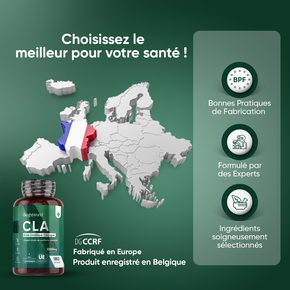 - Acide linoléique conjugué à isomères actifs purs (80% CLA)