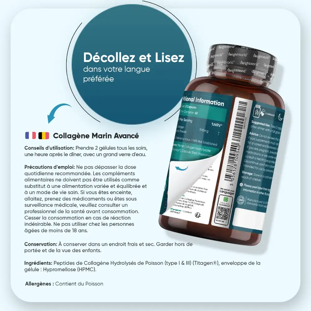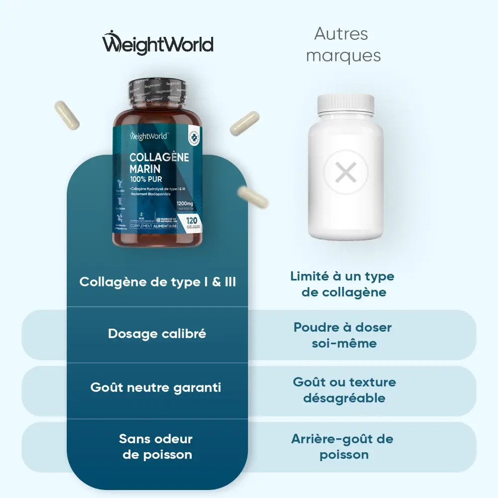 WeightWorld s'engage à offrir des compléments hautement biodisponibles, conçus pour une assimilation optimale par l'organisme. Notre Collagène Marin Pur Titagen® est formulé sans additifs inutiles ou controversés tels que le stéarate de magnésium, garantissant une pureté maximale. Nous privilégions des procédés de fabrication respectueux des normes strictes de qualité et de traçabilité, à savoir les normes BPF (GMP) pour les compléments alimentaires. Chaque lot est testé et certifié par des laboratoires tiers pour assurer efficacité et sécurité. En choisissant WeightWorld, vous optez pour un complément conçu pour des résultats visibles et durables.