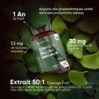 - Action synergique entre le Ginkgo Biloba (6000 mg) et Ginseng Sibérien (600 mg)