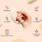 - Cure de 2 mois : 180 gélules par flacon, à raison de 3 gélules par jour, pour une supplémentation durable.