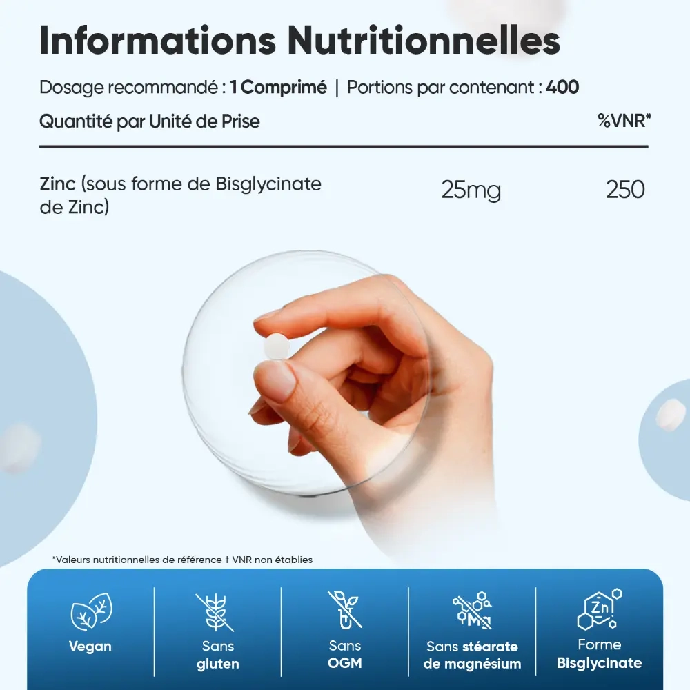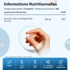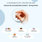- Doses optimisées avec 25 mg de Bislycinate de Zinc par comprimé