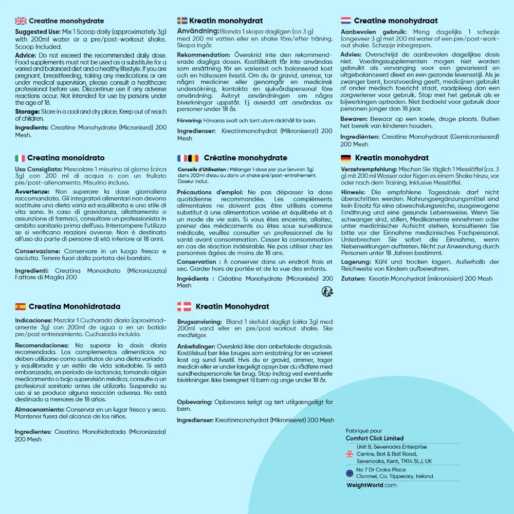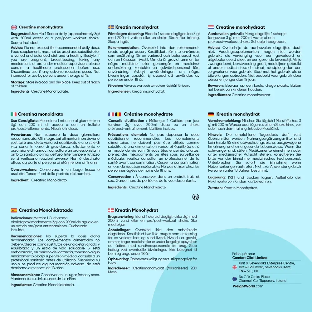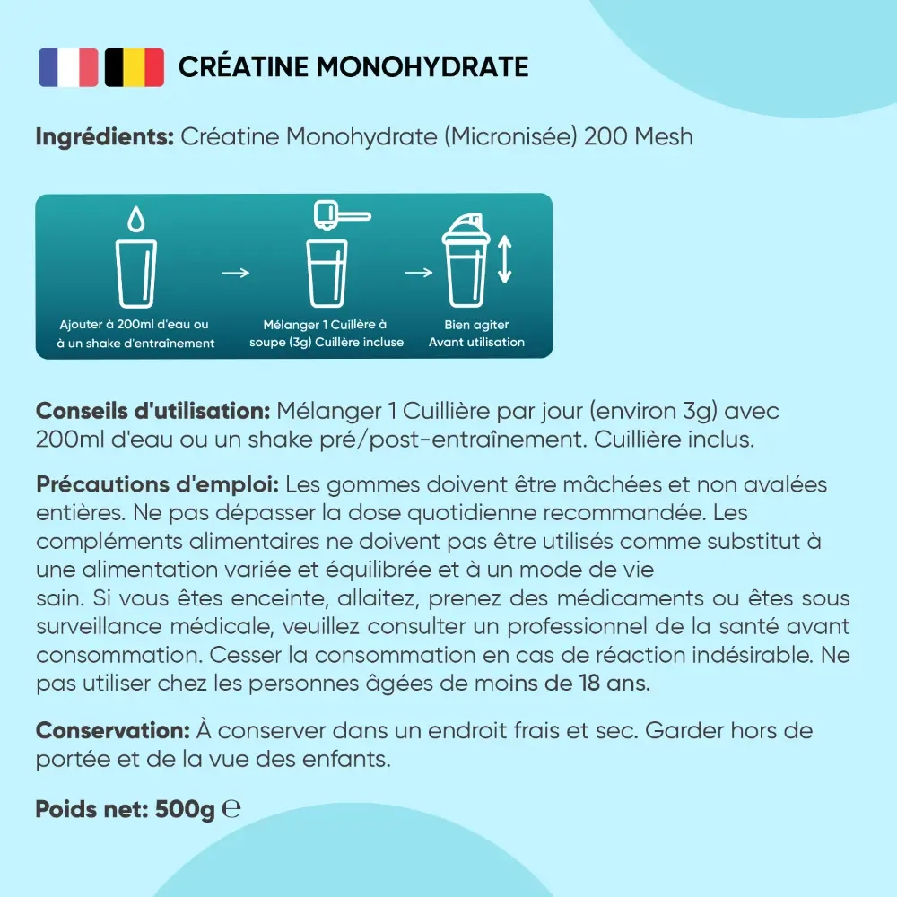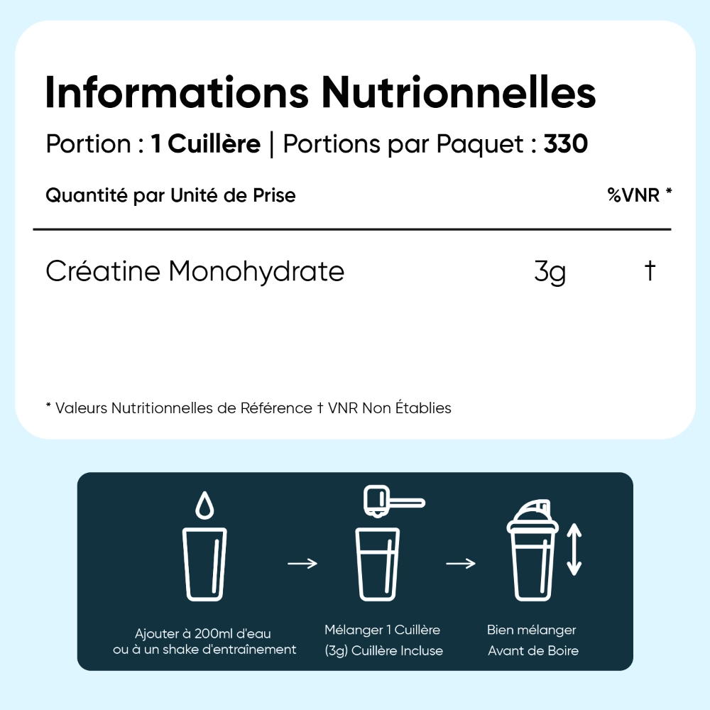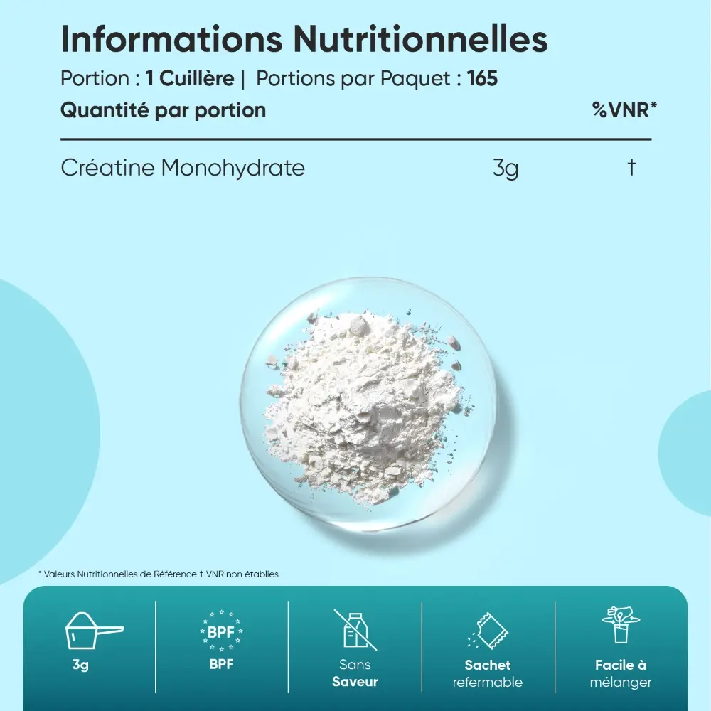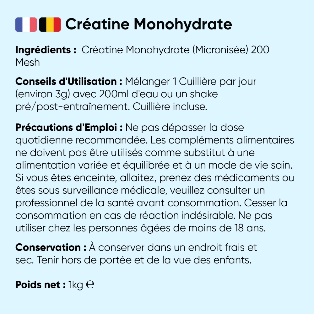 Compris- Créatine monohydrate en poudre 100% pure, sans additifs
