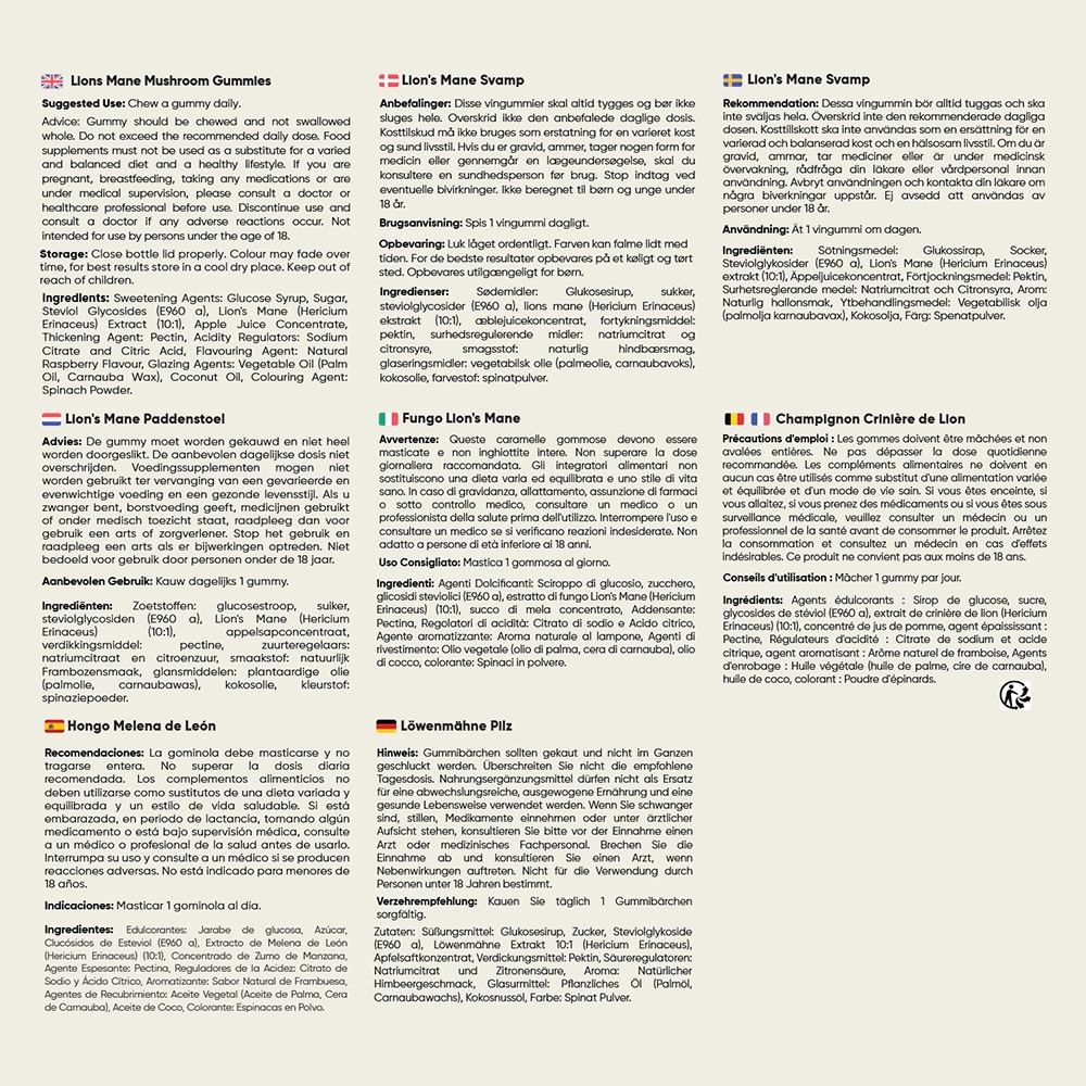 - Puissantes doses de 2000 mg de Crinière de Lion en Gummies