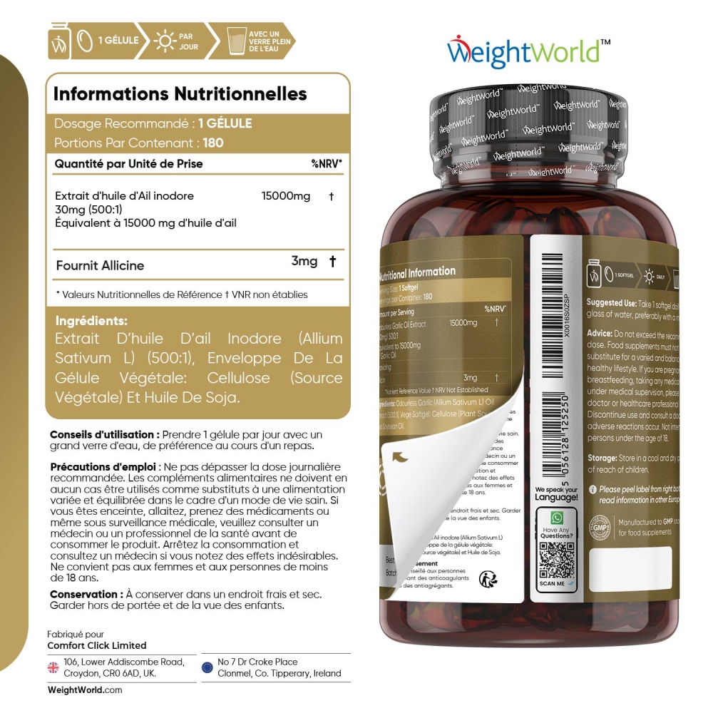 - Huile d'Ail inodores au goût neutre, sans effet sur l'haleine