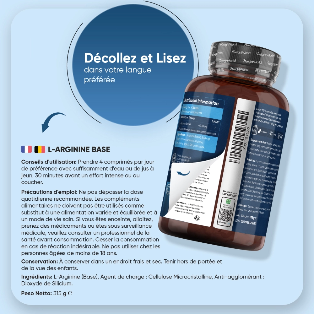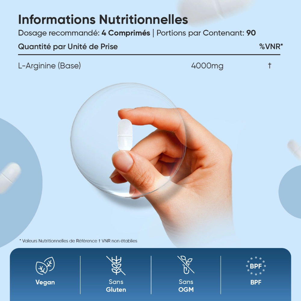 - L-arginine en comprimés faciles à avaler