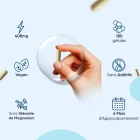 - Adapté à la majorité des régimes alimentaires spécifiques : Végane, sans gluten, sans OGM ni additifs controversés tels que le stéarate de magnésium, ce complément est élaboré à partir de L-théanine, une forme stable et bien tolérée par l'organisme.