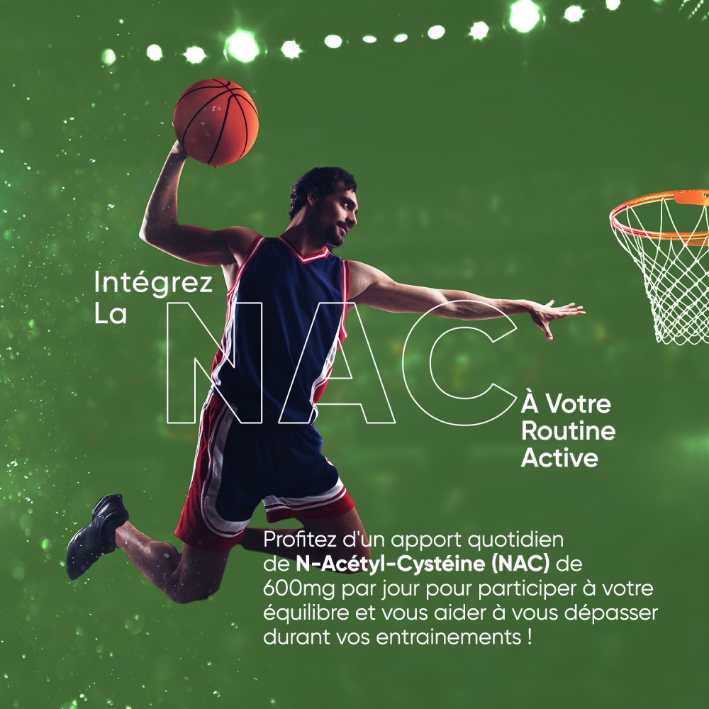 La N-acétyl-cystéine, ou NAC, est une forme stable de la cystéine, un acide aminé non essentiel. Elle est souvent consommée sous forme de complément alimentaire et se distingue par sa structure qui facilite son absorption. Présente naturellement dans l’organisme, la NAC suscite l’intérêt pour ses nombreuses applications dans le domaine du bien-être. La N-Acétyl-Cystéine offre également une alternative mieux tolérée par voie orale que la cystéine libre. Précurseur direct du glutathion — l’un des antioxydants les plus puissants produits par le corps —, la NAC joue un rôle clé dans la lutte contre le stress oxydatif à l’échelle cellulaire.*