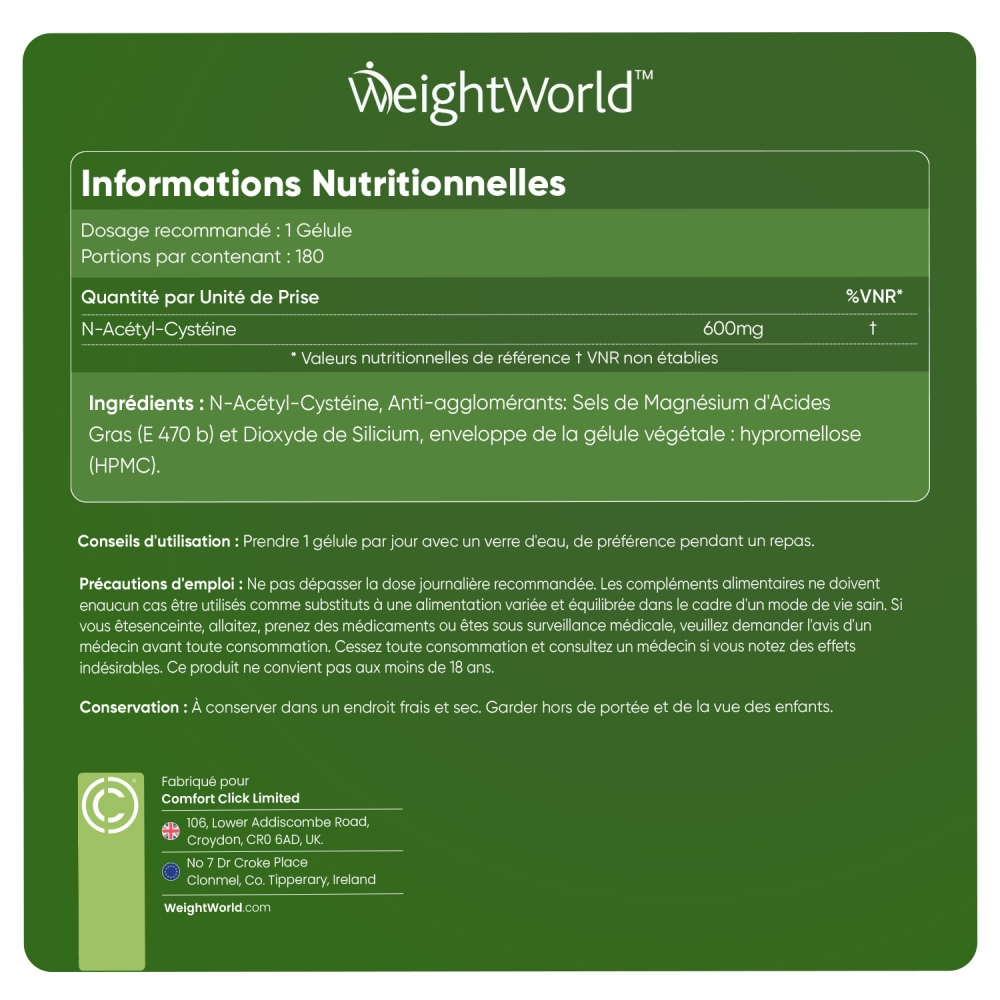 Pourquoi choisir la N-acétyl-cysteine de WeightWorld ?