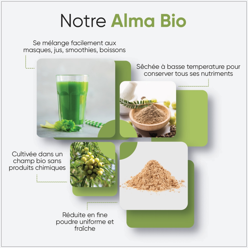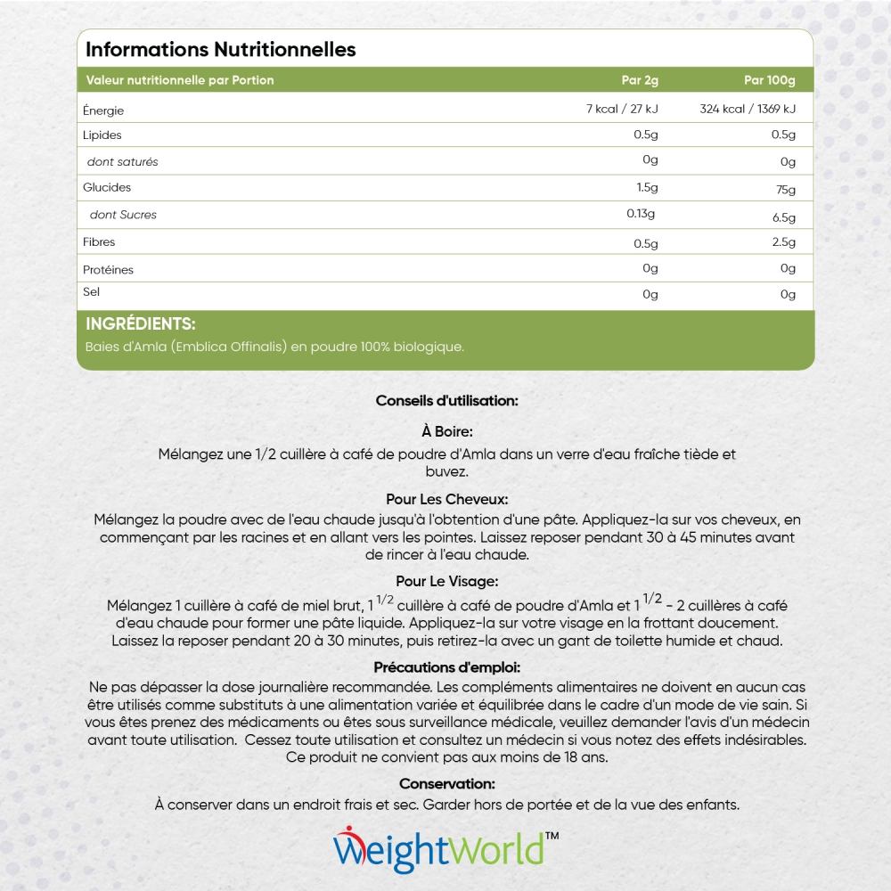 - Amla en poudre à base de groseille indienne certifiée 100% Bio