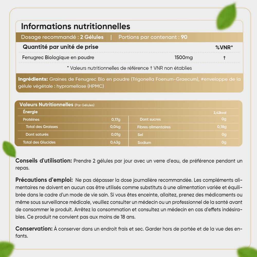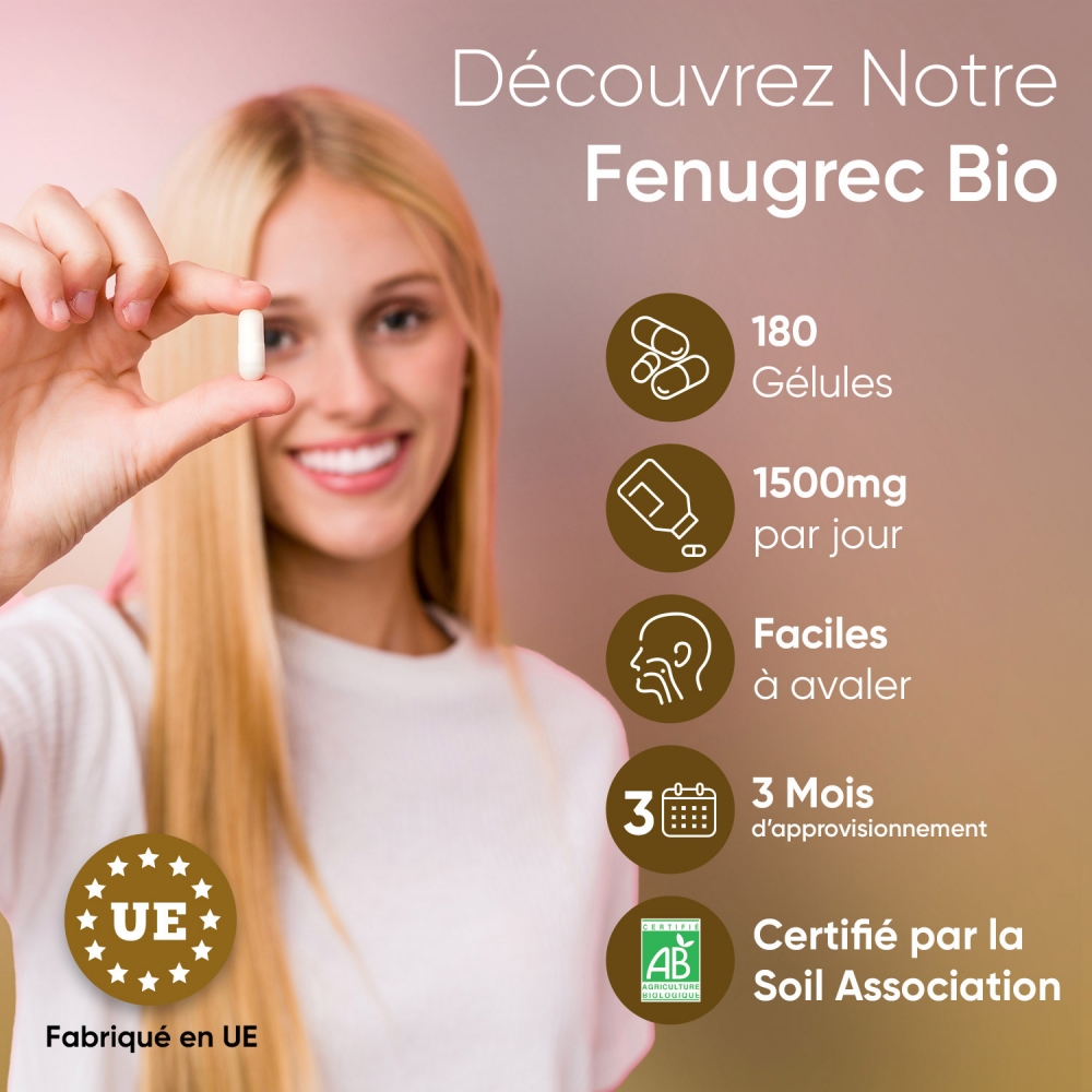 - Doses de 1500 mg de fenugrec en gélules certifiées Bio