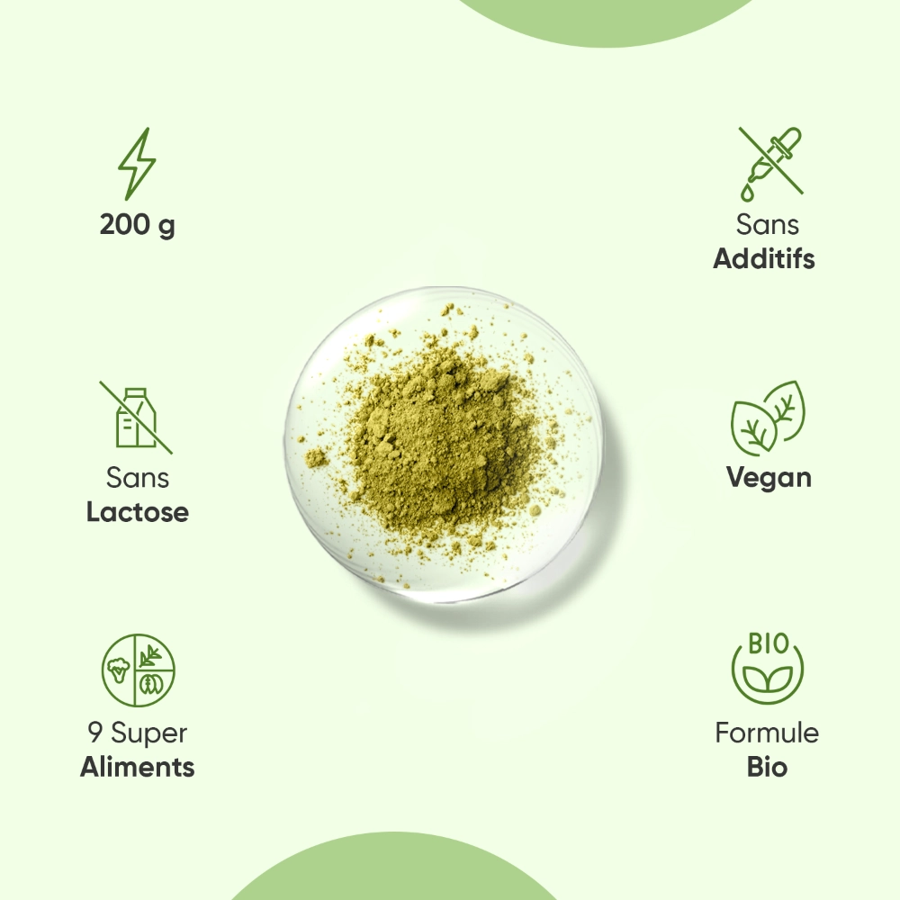 9 super-ingrédients d’origine végétale soigneusement sélectionnés pour leur richesse nutritionnelle exceptionnelle.