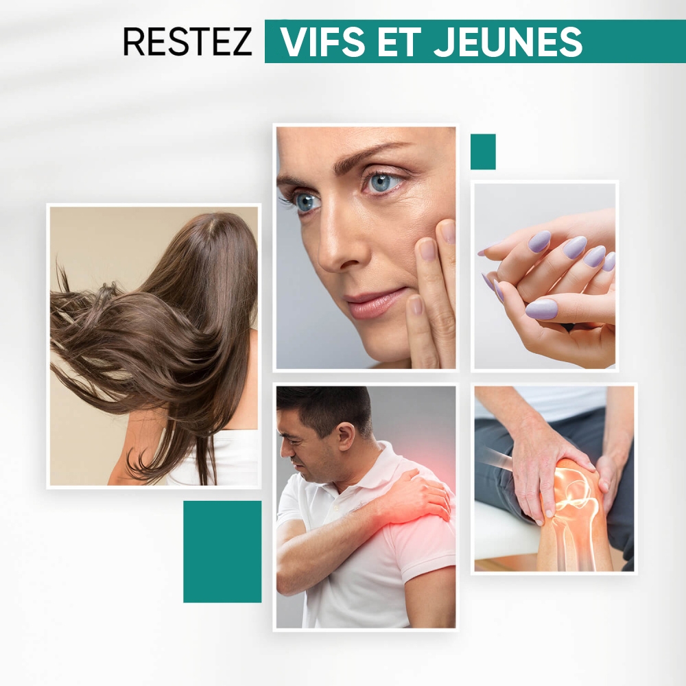 Peau plus lisse & articulation soulagée visible. Formule naturelle et complète, facile à intégrer dans une routine bien-être. Idéal pour les cures de 2 à 3 mois.