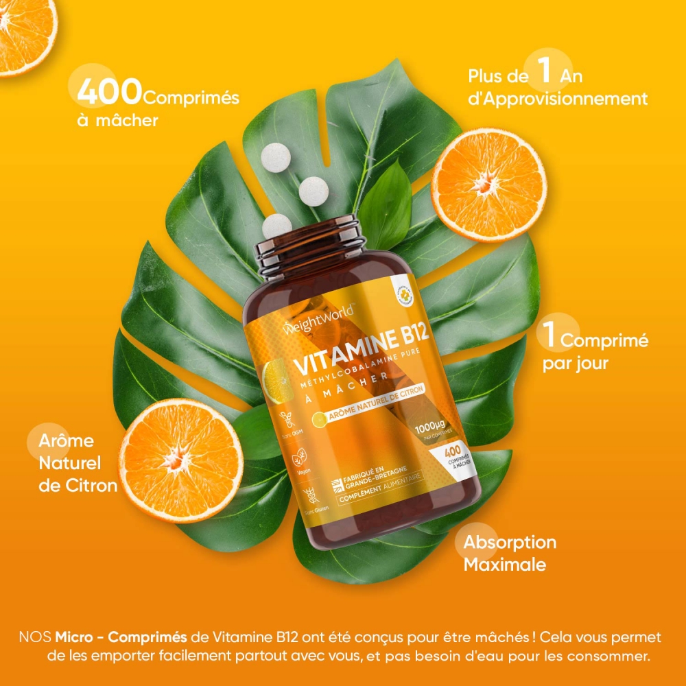 - Doses optimales de 1000 μg de vitamine B12 en comprimés