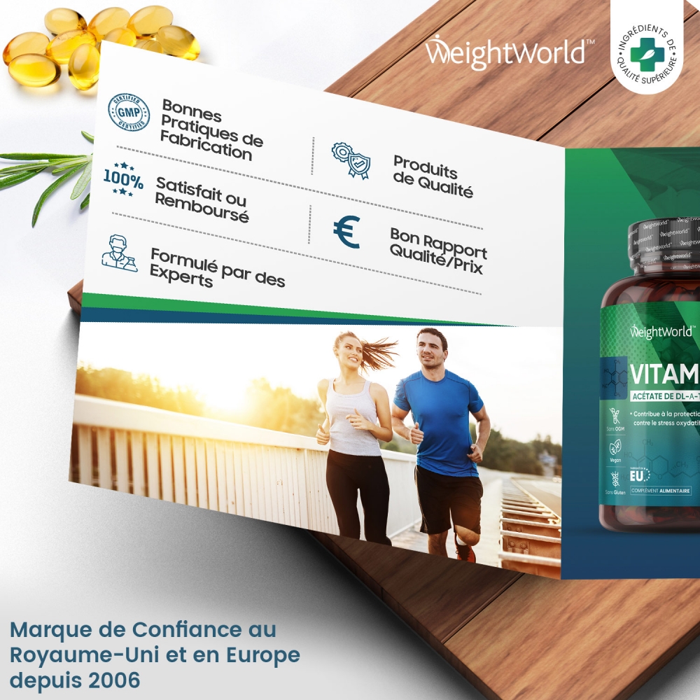- Doses de 400 UI d'acétate de tocophérol, la forme active de la vitamine E