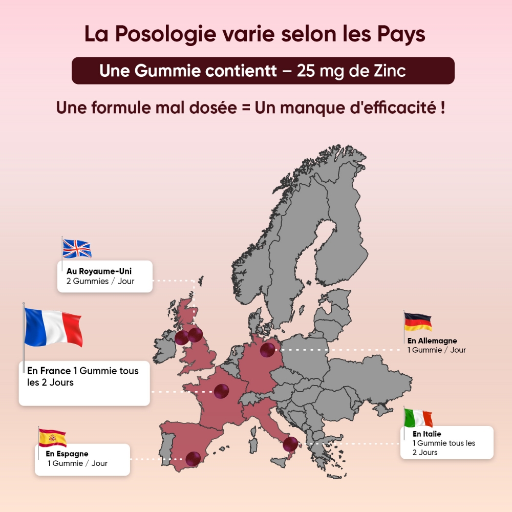 # Bon à savoir : Le dosage de 50mg indiqué sur l'emballage suit les normes européennes. En France, il est recommandé de prendre 15 mg/jour, soit un Gummy tous les 2 jours.